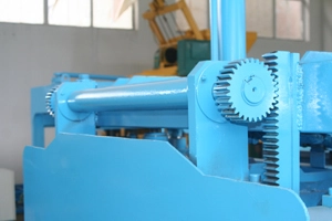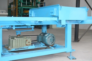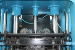 সিঙ্ক্রোনাস ডিমোল্ডিং সিস্টেম যা গিয়ার এবং চেইন দ্বারা চালিত হয় দুটি ডিমোল্ডিং সিলিন্ডারকে সিঙ্ক্রোনাস কাজ করে এবং ছাঁচগুলি স্থিরভাবে চলে যায়